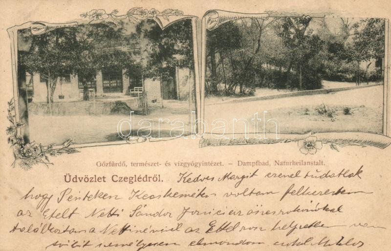 1900 Cegléd, Gőzfürdő, természet- és vízgyógyintézet. Art Nouveau, floral (EK)