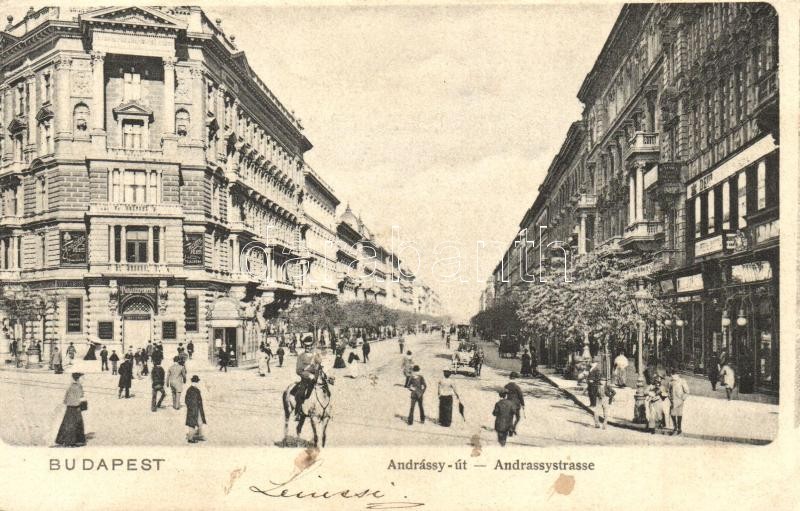 1903 Budapest VI. Andrássy út, takarékpénztár, Fonciere pesti biztosító, földalatti vasút megállóhelye, üzletek (EK)
