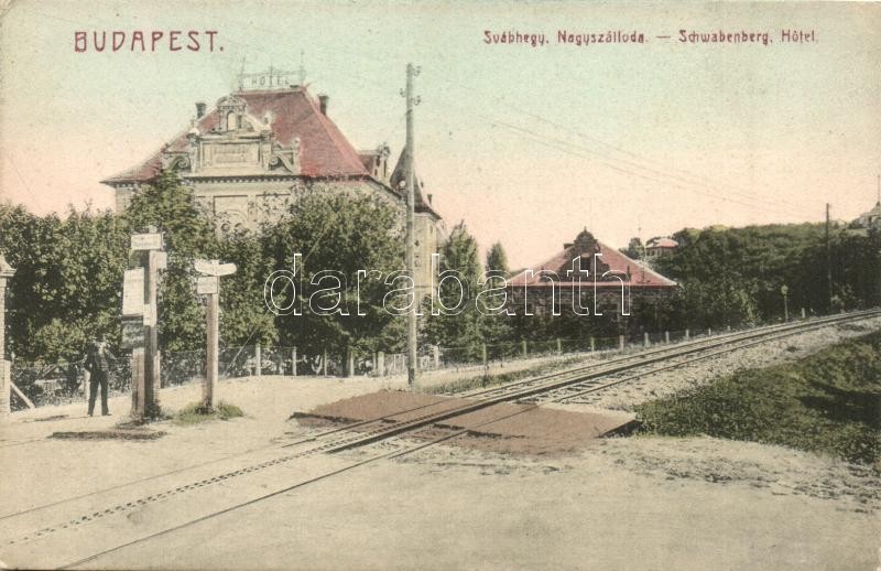 Budapest XII. Svábhegy, Nagyszálloda, Gyógyszertár, fogaskerekű vasút sínek (EK)