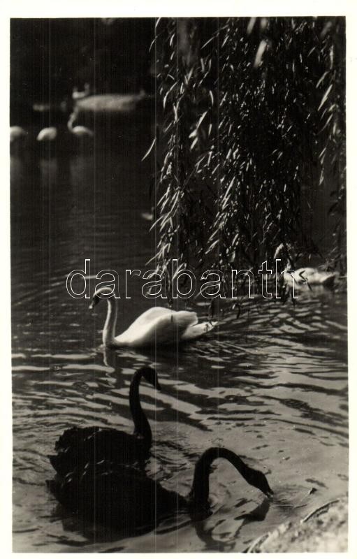 Budapest XIV. Városliget, Budapest Székesfővárosi Állatkert, fekete és fehér hattyúk az Nagytavon, Vadas Ernő felvétele