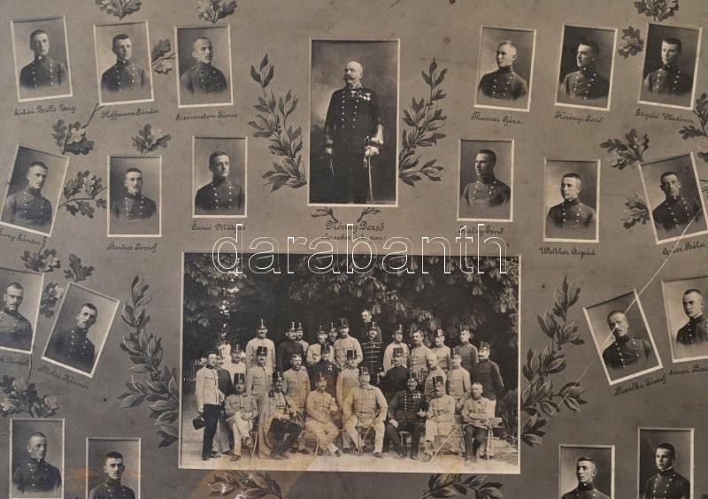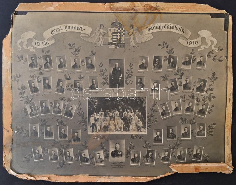 1910 M. Kir. Pécsi Honvéd Hadapród iskola végzős évfolyamának tablófotója, sérült, foltos, 33x42 cm