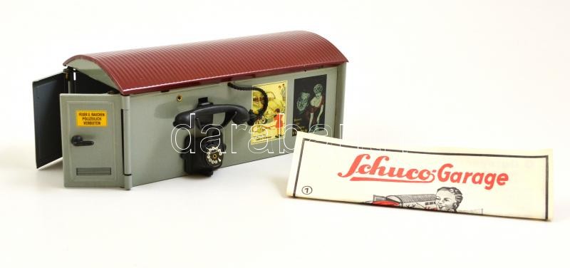 Schuco lemez garázs, leírással, szép állapotban, 15x7x6 cm
