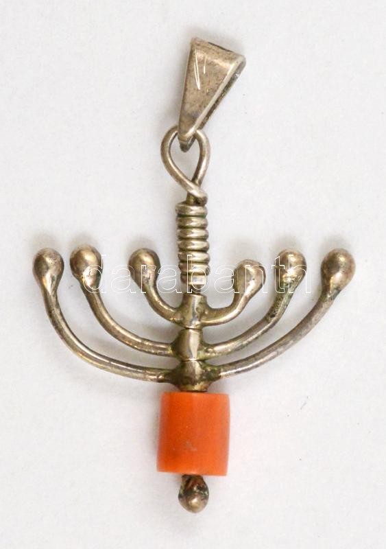 Menóra medál , ezüst, korallal / Silver menorah medal 1,9 g
