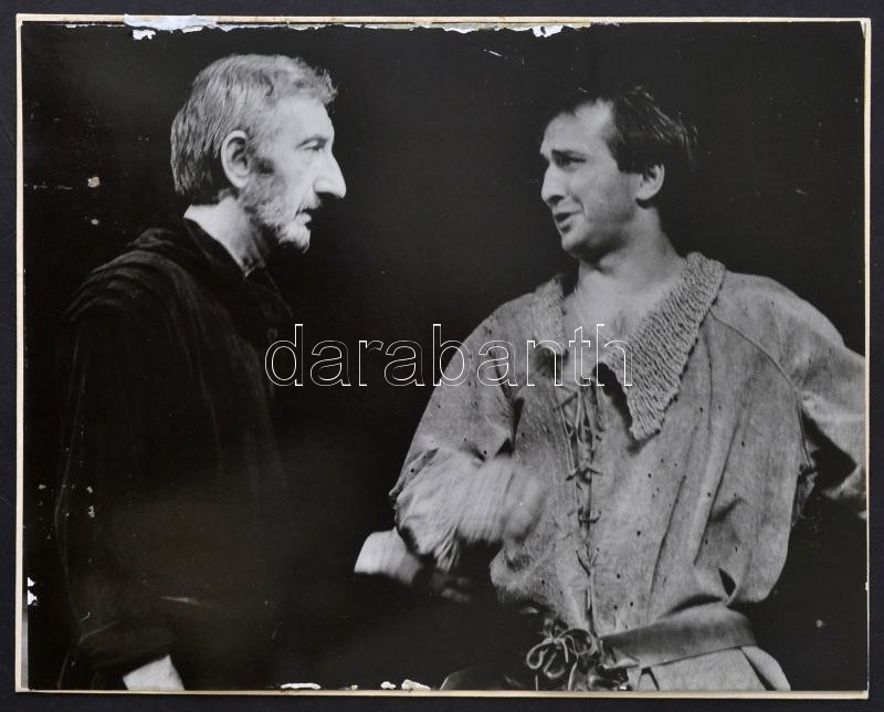 Garas Dezső és Józsa Imre színészek egy jelentben, kartonra ragasztott fotó, szélein sérülésekkel, 24×30 cm