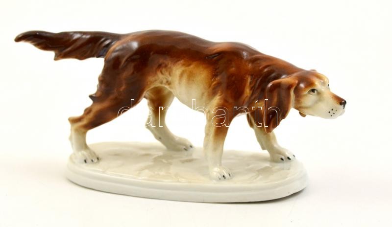 Carl Scheidig K.G. porcelán kutya, kézzel festett, jelzett, hibátlan, 17,5×8 cm