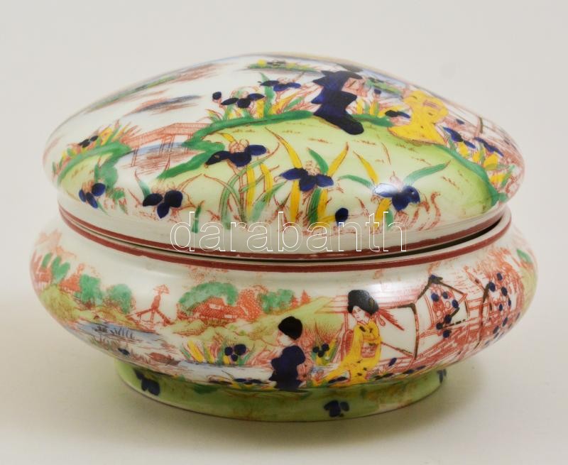 Victoria keleti mintás csehszlovák porcelán bonbonier, részben kézzel festett, jelzett, hibátlan, d: 16 cm, m: 8 cm