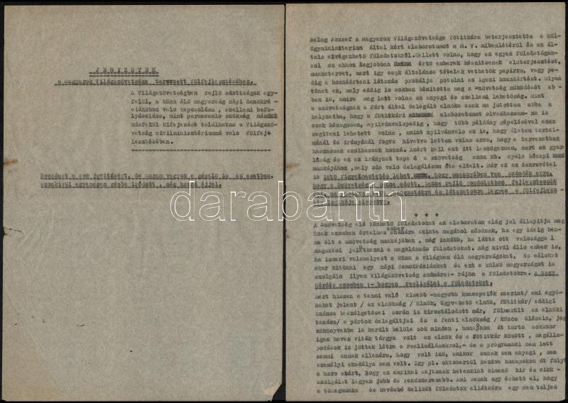 1949 Jegyzetek a Magyarok Világszövetsége tervezett fölfejlesztéséhez Barta Lajos elnök gépirata. 9 p