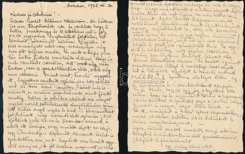 cca 1935 Légrády Mariska ddaját kézzel írt levelei Légrády Ottó (1878-1948) szerkesztőnek 6 db