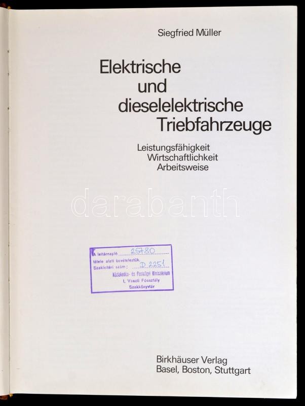 Siegfried Müller: Elektrische und dieselelektrische Triebfahrzeuge. Basel-Boston-Stuttgart,1979,Birkhäuser Verlag. Német nyelven. Kiadói egészvászon-kötés.