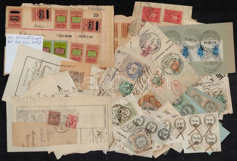 Egy zacskónyi okmánybélyeg kivágásokon a kezdetektől