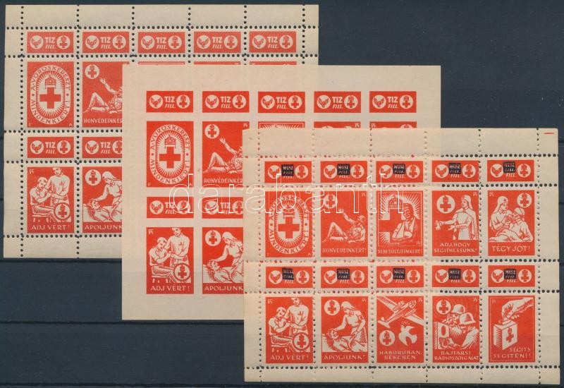 ca. 1944 3 db adománygyűjtő kisív a Vöröskereszt javára, fogazott, vá...