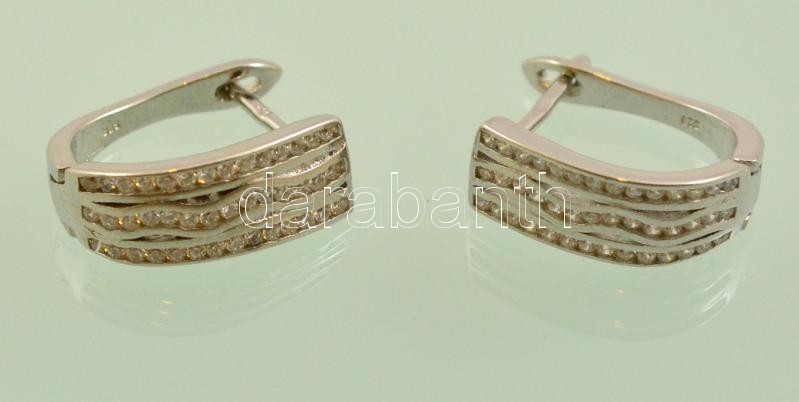 Ezüst(Ag) apró köves fülbevalópár, jelzett, 1,5×1,3 cm, bruttó: 3,3 g