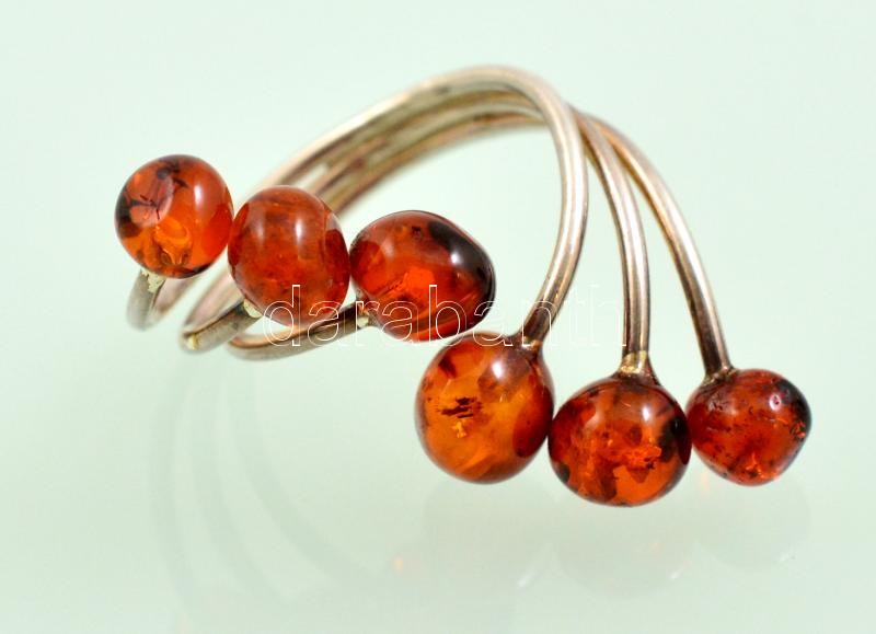 Ezüst(Ag) gyűrű, borostyán gömbökkel, jelzett, méret: 54, bruttó: 4,1 g