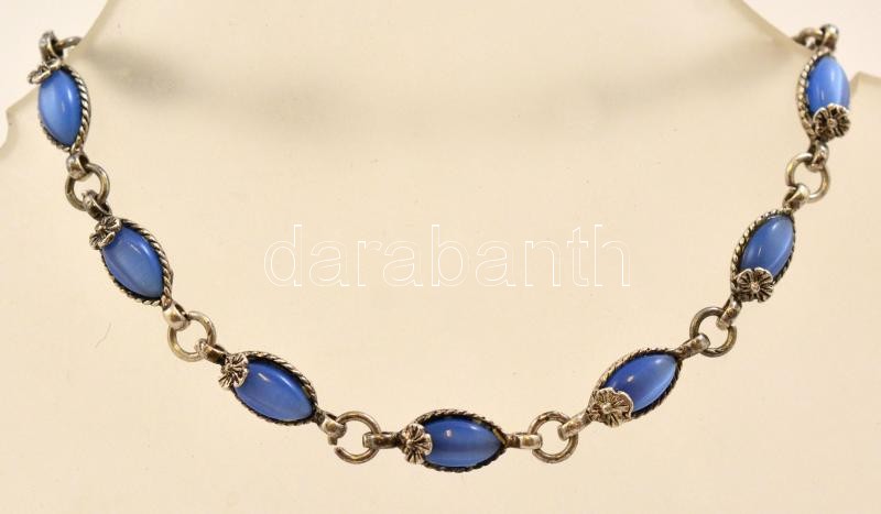 Ezüst(Ag) karkötő, kék kövekkel, jelzett, h: 17 cm, bruttó: 6,6 g