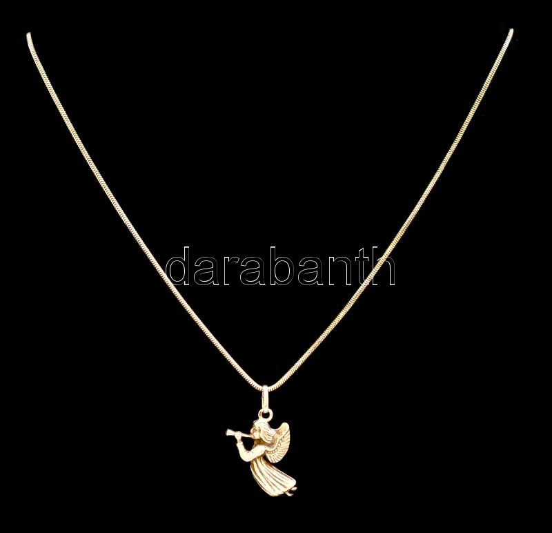 Ezüst(Ag) kígyó nyaklánc, angyal függővel, jelzett, h: 49 cm, 2,8×1,5 ...