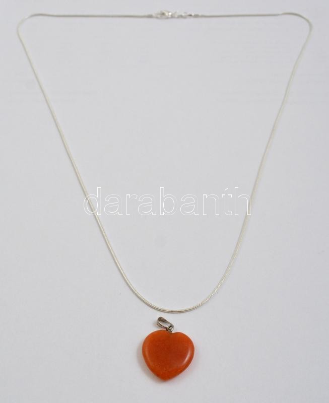 Ezüst(Ag) kígyó nyaklánc, jelzett, h: 58 cm, nettó: 5,5 g + szív alakú medál, 1,5×2 cm