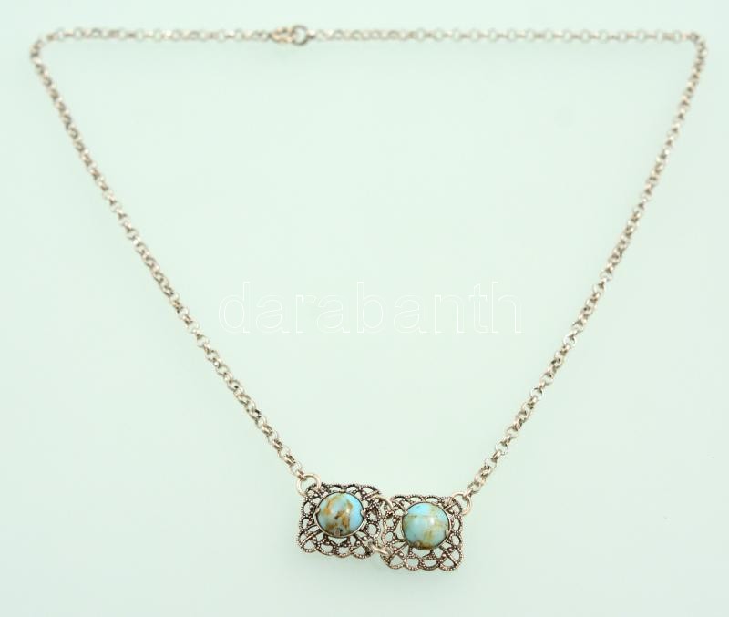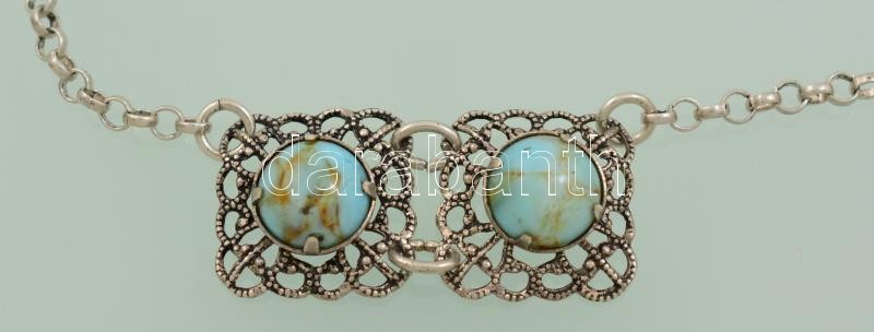 Ezüst(Ag) lánc türkiz medálpárral, jelzett, h: 40 cm, bruttó: 6,6 g