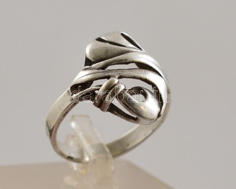 Ezüst(Ag) szecessziós stílusú gyűrű, jelzett, méret: 52, nettó: 3,1 g