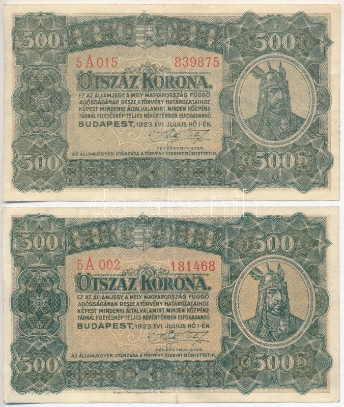 https://www.darabanth.com/en/335-Online-auction/335.0/Numismatics/Hungarian-Banknotes~1500007/1923-500K-2xklf-egyik-Magyar-Penzjegynyomda-Rt-nyomdahely-jelolessel-TIII~II1880246