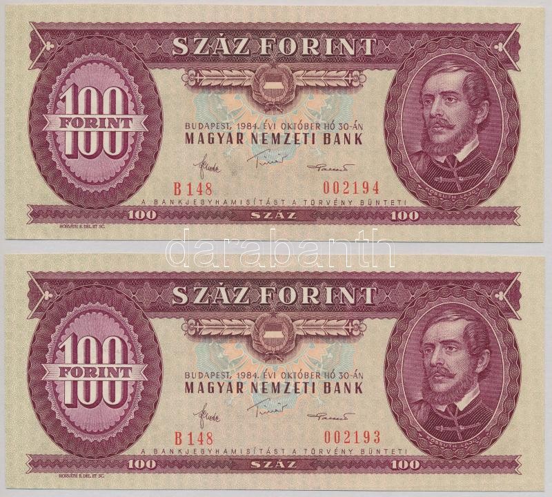 https://www.darabanth.com/en/335-Online-auction/335.0/Numismatics/Hungarian-Banknotes~1500007/1984-100Ft-2x-sorszamkovetok-TII-Adamo-F35~II1877087
