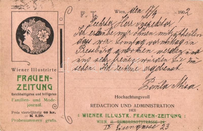 1902 Wiener Illustrirte Frauen-Zeitung. Wien II. Rembrandtstrasse 24. ...