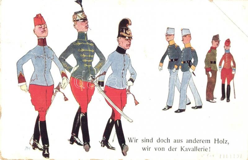 Wir sind doch aus anderem Holz, wir von der Kavallerie / K.u.K. military art postcard, cavalrymen. B.K.W.I. 336-5. s: Schönpflug (r)