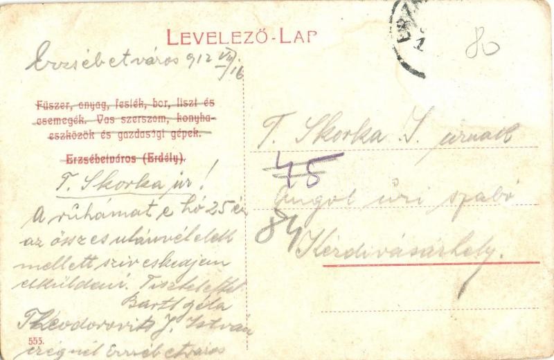 https://www.darabanth.com/en/335-Online-auction/335.0/Postcards/Transylvania~2000005/Erzsebetvaros-Dumbraveni-Elisabethstadt-Muhlsteffen-Gusztav-aruhaza-Schwarz-W-M-uzlete-~II1880868