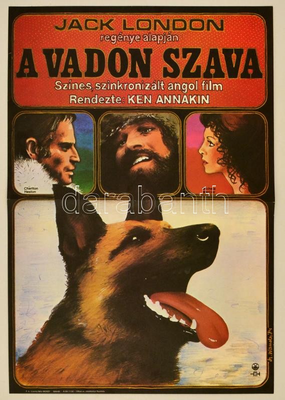 1984 Szyksznian Wanda (1948-): A vadon szava, angol film plakát, Jack London regénye alapján, főszerepben: Charlton Heston, hajtásnyommal, 56,5x39 cm
