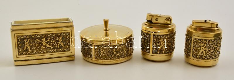 Erhardt & Sohne dohányzó készlet, réz-bakelit, jelzett, összesen: ...