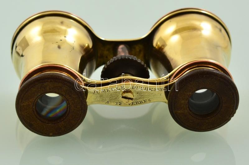cca 1900 Jumelle duchesse á 12 verres jelzett réz és fa színházi látcs...