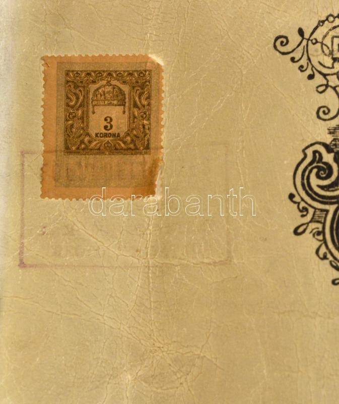 1910 Budapesti Tudományegyetem orvosdoktori oklevél, szepesszombati Genersich Antal (1842-1918) rektor, Tangl Ferenc (1866-1917) dékán, és Hoór Károly (1858-1927) késÅ‘bbi dékán aláÃrásával, 3 k. okmánybélyeggel, hiányzó függÅ‘ pecséttel, pergamen