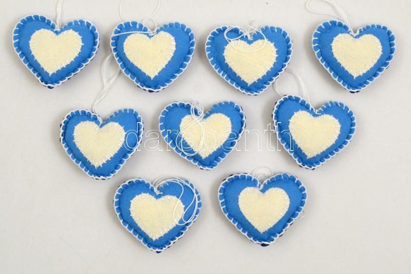 9 db kék, szív alakú felakasztható dísz, m: 6 cm