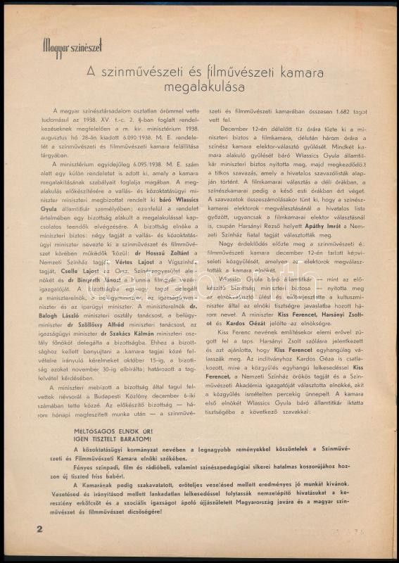 1939 A Magyar Színészet c. folyóirat induló száma.