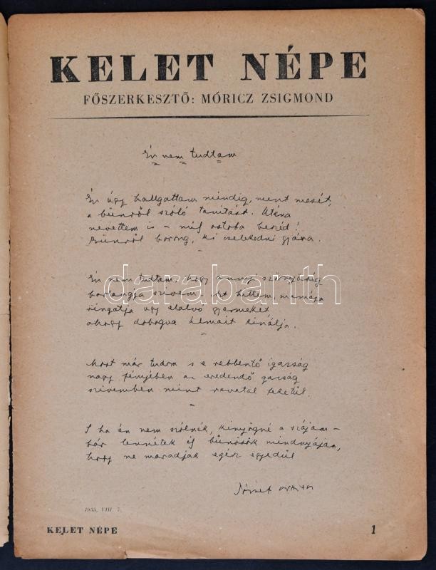 1942 Kelet népe. 1942. május 1. sz., VIII. évf. 8 sz. Szerk.: Móricz Z... https://www.darabanth.com/en/336-Online-auction/336.0/Art-and-other-collectibles/Printed-Materials~500030/1942-Kelet-nepe-1942-majus-1-sz-VIII-evf-8-sz-Szerk-Moricz-Zsigmond-Pest-Lloyd-Nyom~II1887466