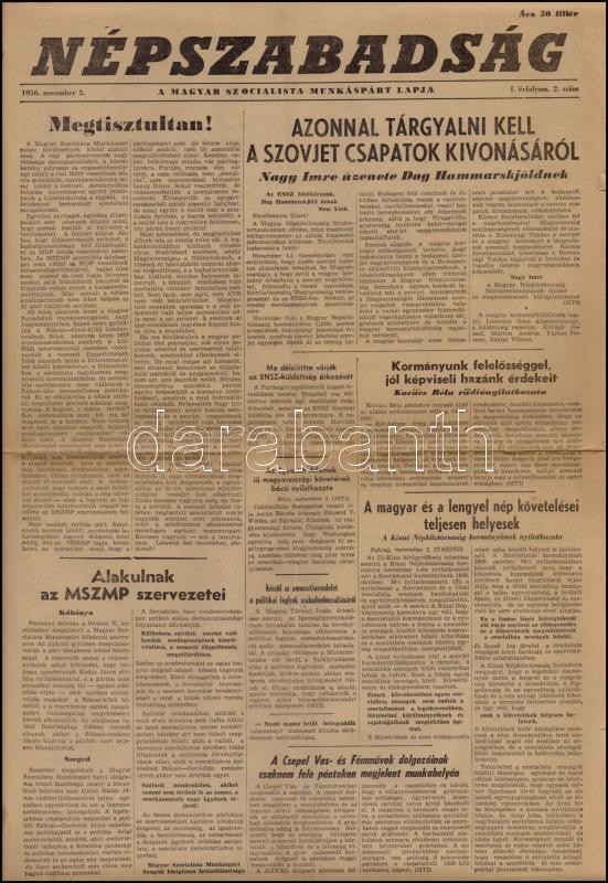 https://www.darabanth.com/en/336-Online-auction/336.0/Art-and-other-collectibles/Printed-Materials~500030/1956-Nepszabadsag-I-evf-2-sz-1956-nov-3-Kis-szakadasokkal~II1887210