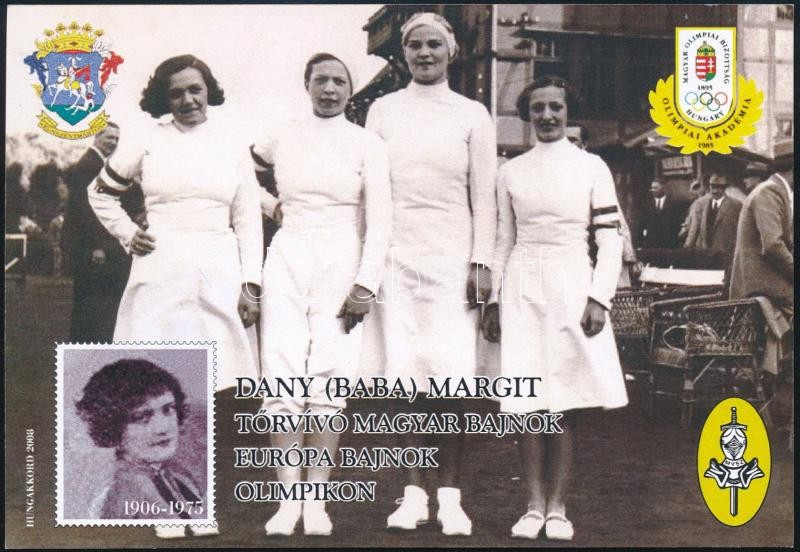 2008 Dany (Baba) Margit tőrvívó bajnokról elnevezett sportcsarnok átadója alkalmából készült emléklap
