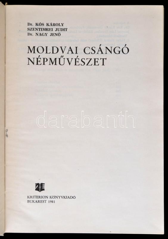 https://www.darabanth.com/en/336-Online-auction/336.0/Books/Books-Architecture-Art~2000006/Kos-Karoly-Szentimrei-Judit-Dr-Nagy-jeno-Moldvai-csango-nepmuveszet-Bukarest-1981-kri~II1864914