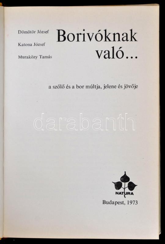 Dömötör József-Katona József-Muraközy Tamás: Borivóknak való... Bp.,1973,Natura. Kiadói kemény-kötés, kiadói papír védőborítóban.