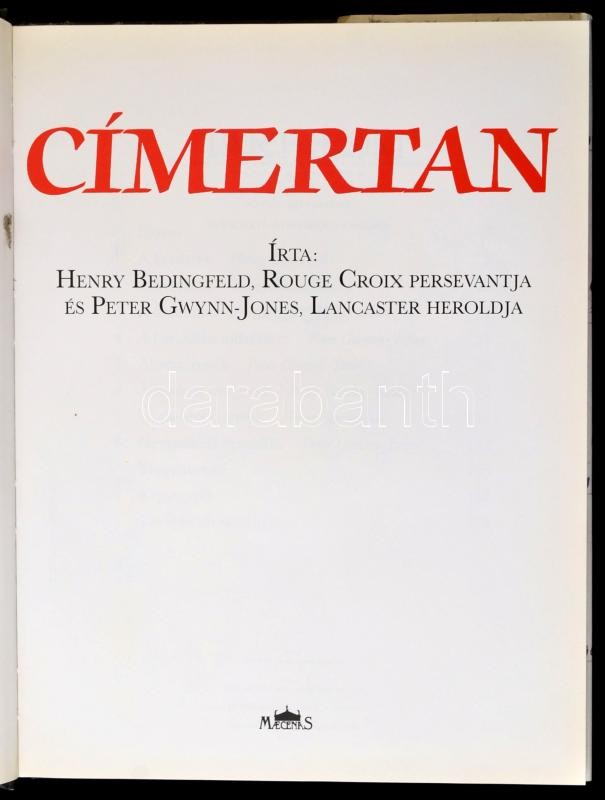 Henry Bedingfeld-Peter Gwynnn-Jones: Címertan. Fordította: Végh István. Bp., 1994, Maecenas. Kiadói kartonált papírkötés, kiadói papír védőborítóban.