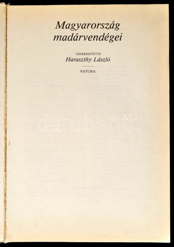Magyarország madárvendégei. Szerk.: Haraszthy László. Bp.,1988, Natura. Kiadói kartonált papÃrkötés, tollas bejegyzéssel a 156. oldalon, a felhasznált irodalomnál számos tollas aláhúzással, az elÅ‘zéklapokon tulajdonosi bejegyzésekkel.