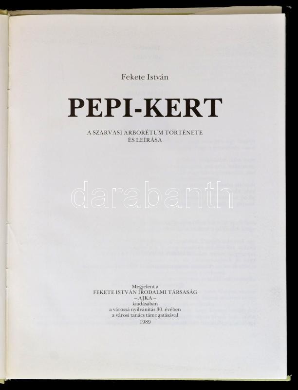 Fekete István: Pepi-kert. A Szarvasi Arborétum Története és leírása. A... https://www.darabanth.com/en/336-Online-auction/336.0/Books/Books-Other-rarities~2000018/Fekete-Istvan-Pepi-kert-A-Szarvasi-Arboretum-Tortenete-es-leirasa-Ajka-1989-Fekete-IstvC3~II1860941