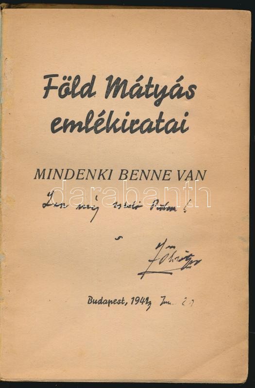 Föld Mátyás emlékiratai. Mindenki benne van. Bp., 1941, (Kispest, Fara... https://www.darabanth.com/en/336-Online-auction/336.0/Books/Books-Other-rarities~2000018/Fold-Matyas-emlekiratai-Mindenki-benne-van-Bp-1941-Kispest-Farago-Imre-Nyomdaja-KiadC3~II1856681