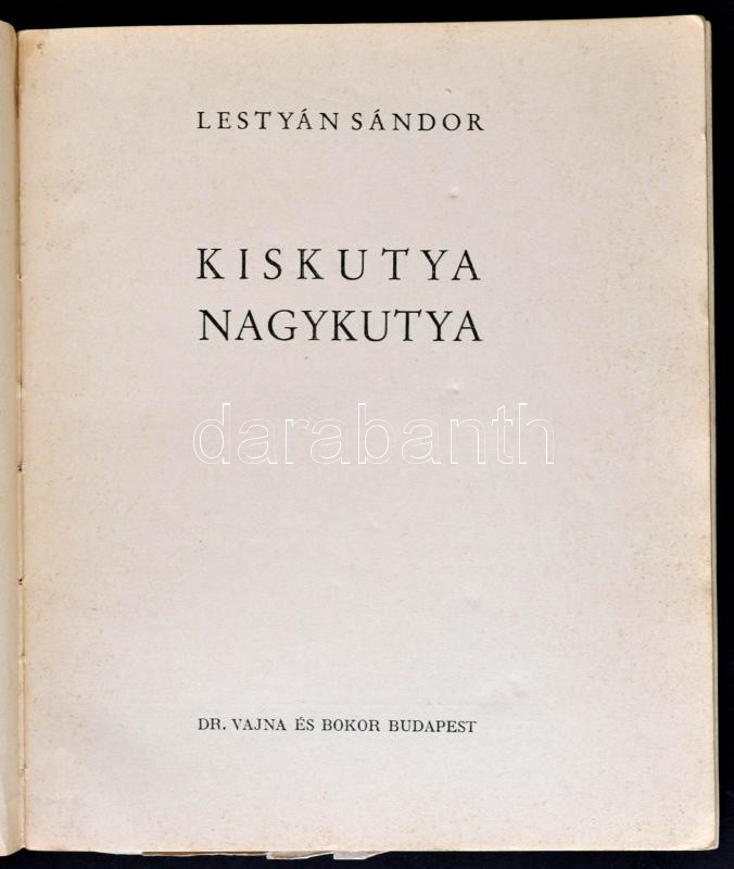 Lestyán Sándor: Kiskutya, nagykutya. Vadas Ernő egészoldalas fekete-fehér fotóival. Bp.,1941,Dr. Vajna és Bokor. Kiadói papírkötés, kiadói kopott papír védőborítóban, a papír védőborító leszakadt.