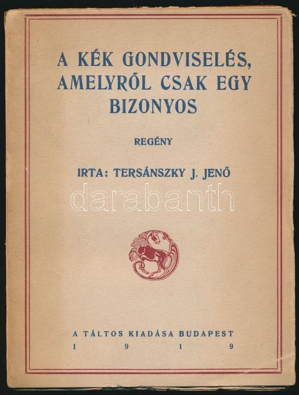 Tersánszky J. Jenő: A kék gondviselés, amelyről csak egy bizonyos. Bp.,1918, Táltos. Kiadói papírkötés, a hátsó borítón szakadással.