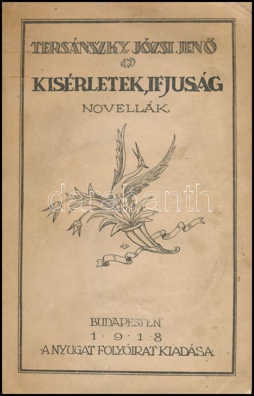 Tersánszky Józsi Jenő: Kísérletek, ifjúság. Novellák. Bp.,1918, Nyugat... https://www.darabanth.com/en/336-Online-auction/336.0/Books/Books-Other-rarities~2000018/Tersanszky-Jozsi-Jeno-Kiserletek-ifjusag-Novellak-Bp-1918-Nyugat-Pallas-ny-158plus2-p~II1817720