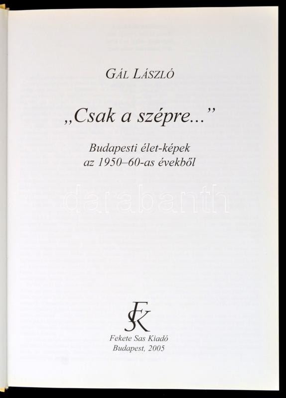 Gál László: "Csak a szépre..." Budapesti élet-képek az 1950-60-as évekből. Bp., 2005, Fekete Sas Kiadó. Kiadói kartonált kötés, jó állapotban.