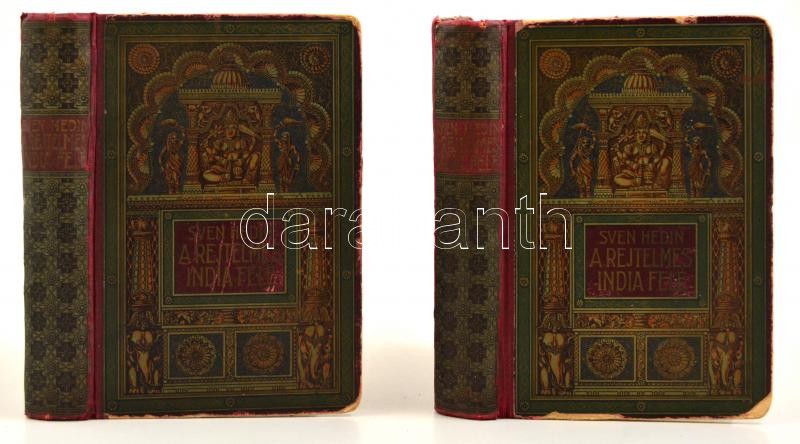 Description: Sven Hedin: A rejtelmes India felé. Sven Hedin utazása Perzsia sivatagjain keresztül I-II. Fordította és bevezetéssel ellátta Zigány Árpád. Bp., é.n., Magyar Kereskedelmi Közlöny. Sok fényképpel, rajzzal illusztrált kiadvány. Kiadói dombornyomott, gazdagon díszített, egészvászon kötés, erősen kopott szélekkel