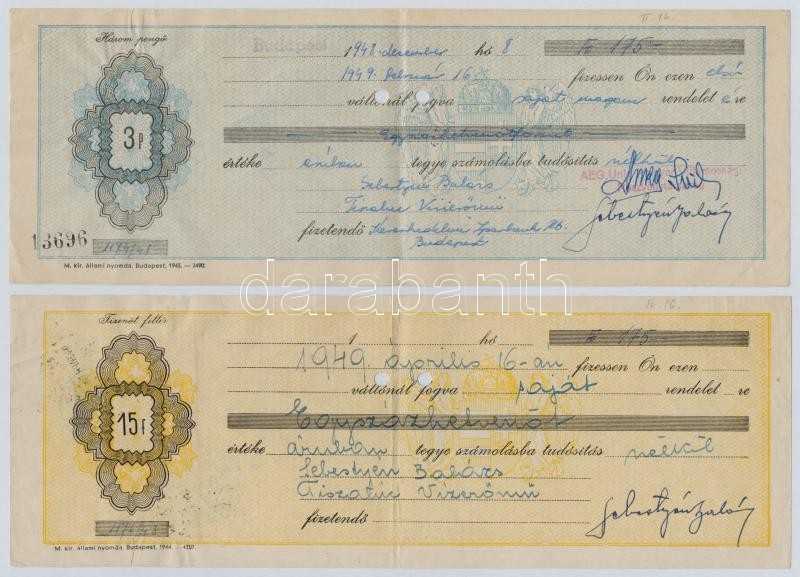 1948-1949. 8db-os részben illetve teljesen kitöltött váltó tétel, mind...
