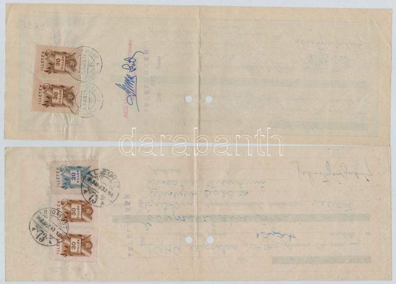1948-1949. 8db-os részben illetve teljesen kitöltött váltó tétel, mindegyik illetékbélyeggel, és lyukasztással érvénytelenítve T:II-,III szép papír