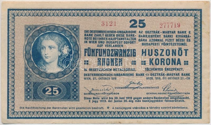 1918. 25K "3121" 3mm, hullámos hátlap, hamis "Budapest ...